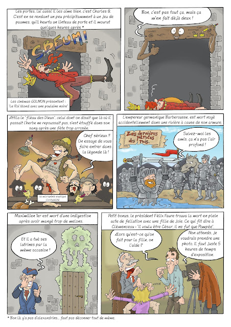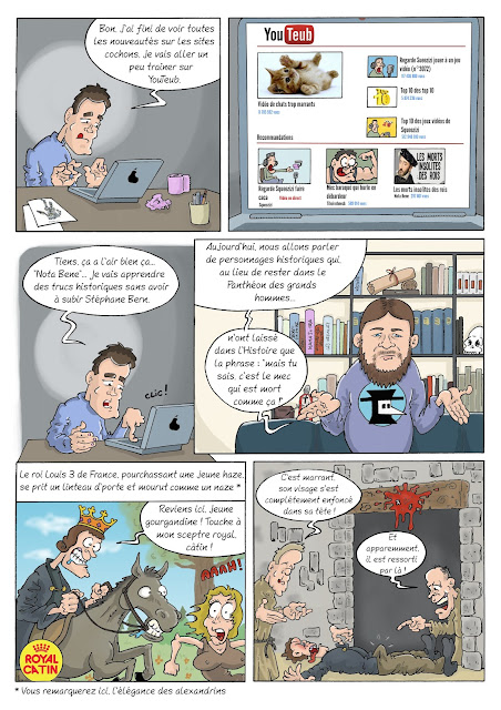 Petite BD sur les morts insolites des rois inspirée de l'excellente vidéo de la chaîne Youtube "Nota Bene" (voir en bas de l'article), chaîne que je vous encourage vivement à aller voir.