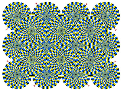 Lorsque nous parcourons des yeux les ronds, et malgré le fait que l'image soit fixe, les ronds se mettent à tourner sur eux-mêmes. Les cellules photoréceptrices s'épuisent face à la complexité de l'image et cela créé l'illusion du mouvement.
