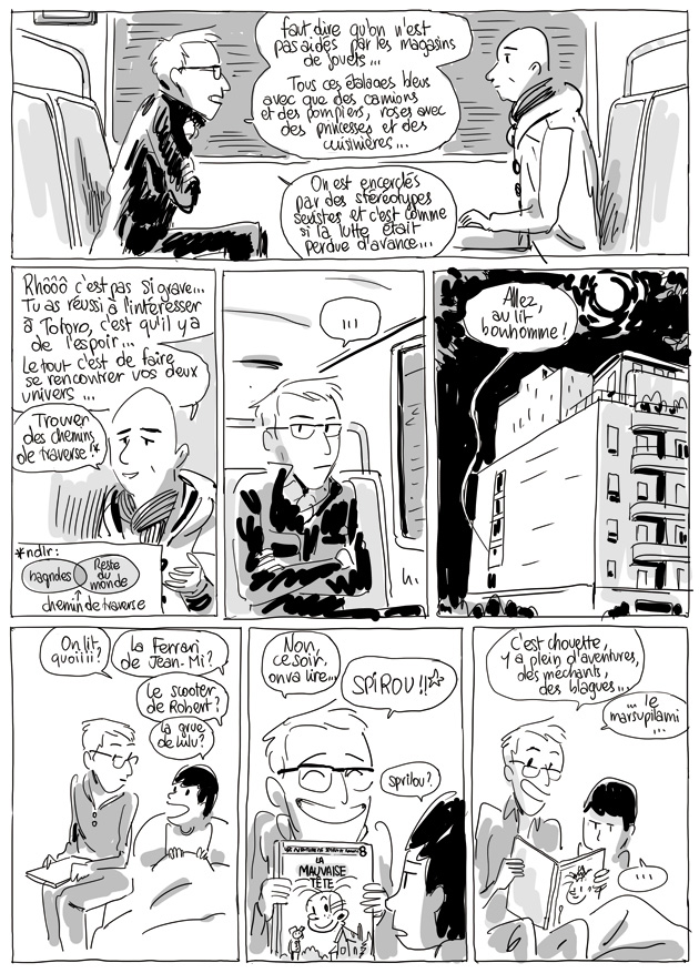Et puis quatre ans plus tard, Bayard a décidé d'éditer les BD créées spécialement pour Okapi en album dans la jolie collection BD Kids. Alors avec le scénariste, on en profité pour relifter l'ensemble de l'album : petits changements de scénario, simplification du découpage, pages entièrement redessinées... La version qui sort aujourd'hui en album est donc une sorte de director's cut réécrit / remonté / remasterisé (bref, vous avez compris l'idée) de celle parue il y a longtemps dans Okapi.