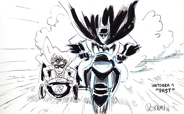 Ca permet de sortir la tête des projets en cours et de réaliser des petits exercices quotidiens. Et comme toute occasion de dessiner Batman est bonne à prendre, j'ai fait une spéciale Batman (et son fidèle acolyte Robin).