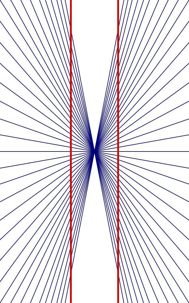 Les deux lignes rouges verticales sont parallèles mais elles semblent inclinées vers l'extérieur pour certains observateurs.