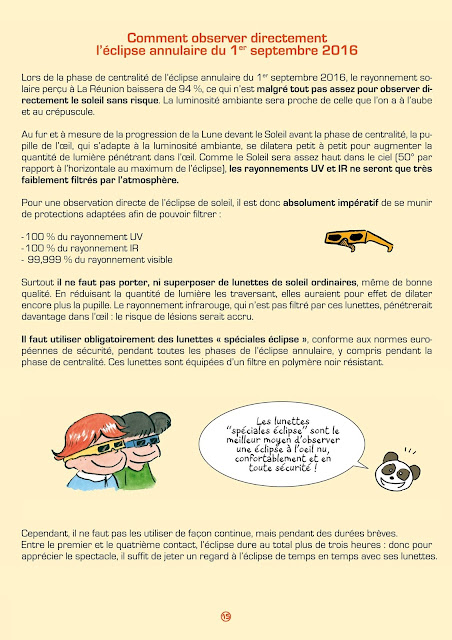 A la suite de ma BD sur l'éclipse totale de Soleil du 20 mars 2015 (voir plus bas), on m'a demandé de concevoir et réaliser une exposition à l'occasion de l'éclipse annulaire du Soleil qui sera visible le 1er septembre 2016 depuis l'île de la Réunion.